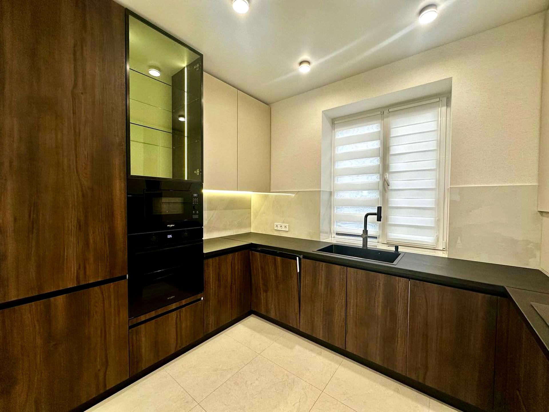 Сучасна вбудована кухня, обладнана якісною технікою.