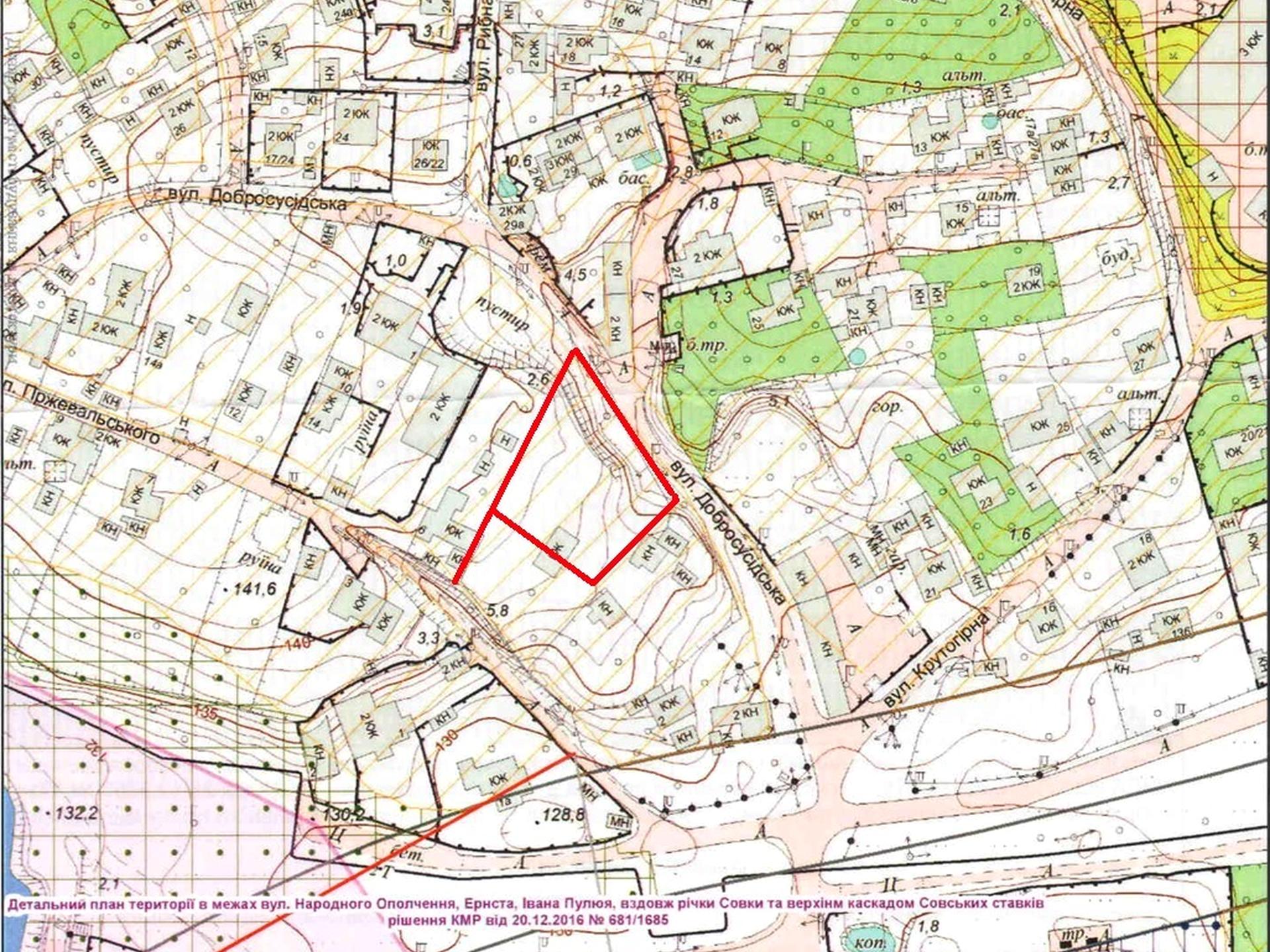 Продаж великої ділянки 20 соток по вулиці Добросусідська 1-Б/Андрія Норова 4-А (вул. Пржевальського) в мікрорайоні Совки, Совські пруди в Солом'янському районі.