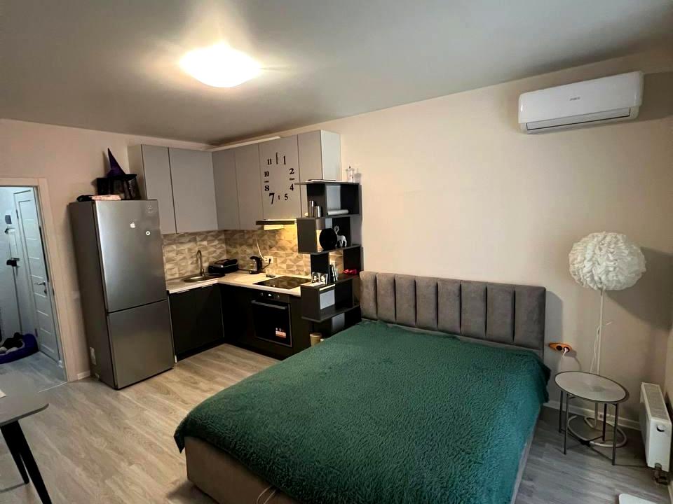 В квартирі 1 кімната, Технологія будівництва - Монолітно-каркасна. Вид з вікон у двір. Планування кімнат Студія. Гаряча вода - електричний бойлер. Опалення автономне. Суміщений санвузол. Є балкон. В квартирі є Шафа, Ліжко, Кондиціонер, Пральна машина, Ванна, Холодильник. Будинок побудований в 2024 році. Загальний стан квартири - З ремонтом. Автопарковка, Охорона. Поруч є школа, дитсадок, зупинки, супермаркет. Терміново, Вільна. Безбар'єрність: пандус. Покриття підлоги: ламінат. Інтернет оптоволоконний. Працює без світла - вода, опалення, інтернет, ліфт. Комісія за послуги 2000 $