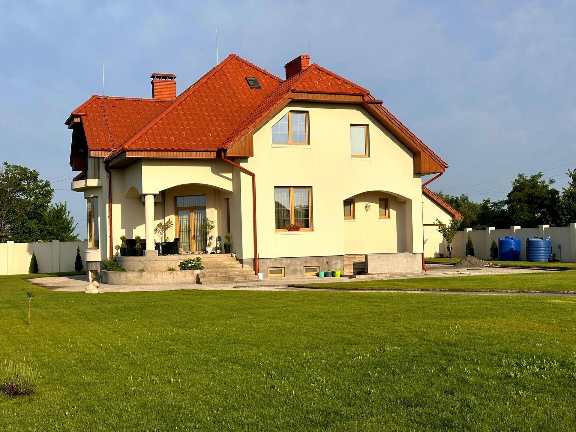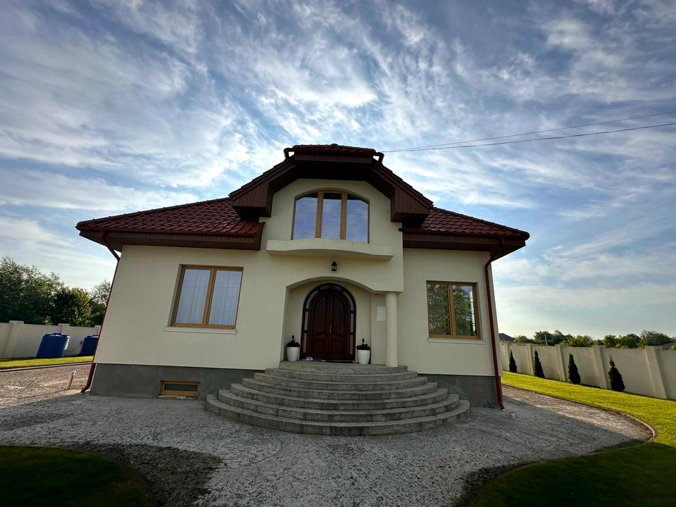Будинок, 2 поверхи, 5 кімнат. Матеріал стін - цегляний, фундамент будинку - залізобетон, матеріал перекриттів - монолітний залізобетон. Під'їзд до будинку - асфальт. Площа ділянки 19 соток. Висота стелі 3.8 метра. Вид з вікон у двір. Планування кімнат Роздільне. Газу немає. Холодна вода - свердловина, гаряча вода - електричний бойлер. Опалення котел твердопаливний. У будинку 2 роздільних санвузла, туалет / ванна. Сантехніка нова. Проведені. Вхідні двері броньовані, сходи бетонні. Покриття підлоги - паркет, є підігрів підлоги. В будинку 1 балкон. Тип кухні - кухня-студія. Вікна металопластикові, нові. Покриття даху - черепиця. Є огорожа. Є підвал. У будинку є Телевізор, Шафа, Холодильник, Ліжко, Пральна машина, Мікрохвильовка, Кондиціонер, Сигналізація, Супутникове ТБ, Лічильники, Душова кабіна, Посудомийна машина, Камін. Будинок побудований в 2022 році. Своя каналізація. На території ділянки є прибудова. У будинка 1 власник. Загальний стан будинку - З ремонтом. Можливість прописки. Поруч є зупинки, супермаркет, дитсадок, школа. Будинок приватизований. Торг доречний, Терміново. Сантехніка нова. Є автономна електроенергія - генератор, акумулятори / джерела безперебійного живлення. Інтернет оптоволоконний. Зовнішнє утеплення стін. Працює без світла - вода, опалення, інтернет, резервне живлення (акумулятори/генератор). Комісія за послуги 2 %