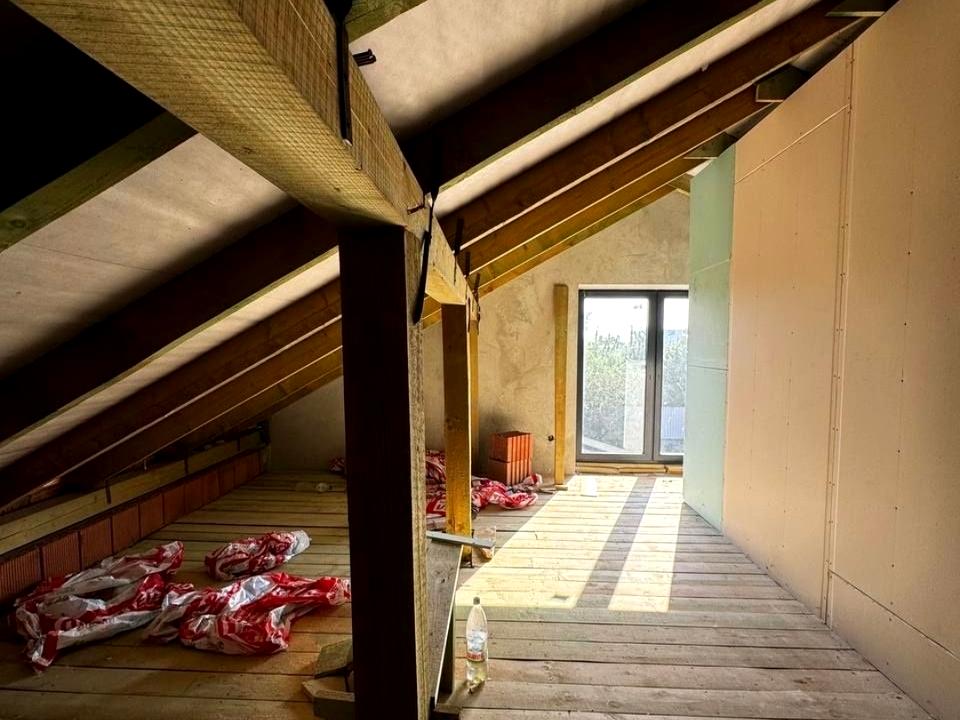 стеля утеплена мінватою; встановлено п'ятикамерні вікна «Veka» темно сірого кольору.
