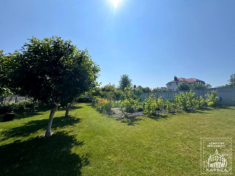 Ділянка: 10,4 сотки, доглянута територія з садом, газоном, терасою та садовим пеналом (дровітня).