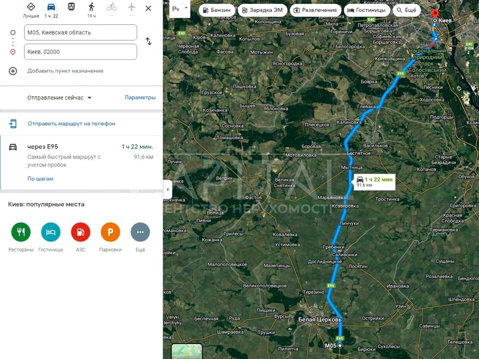 До Білої Церкви 5 хв їзди, до Києва 50 хв, До Одеси 4 години.