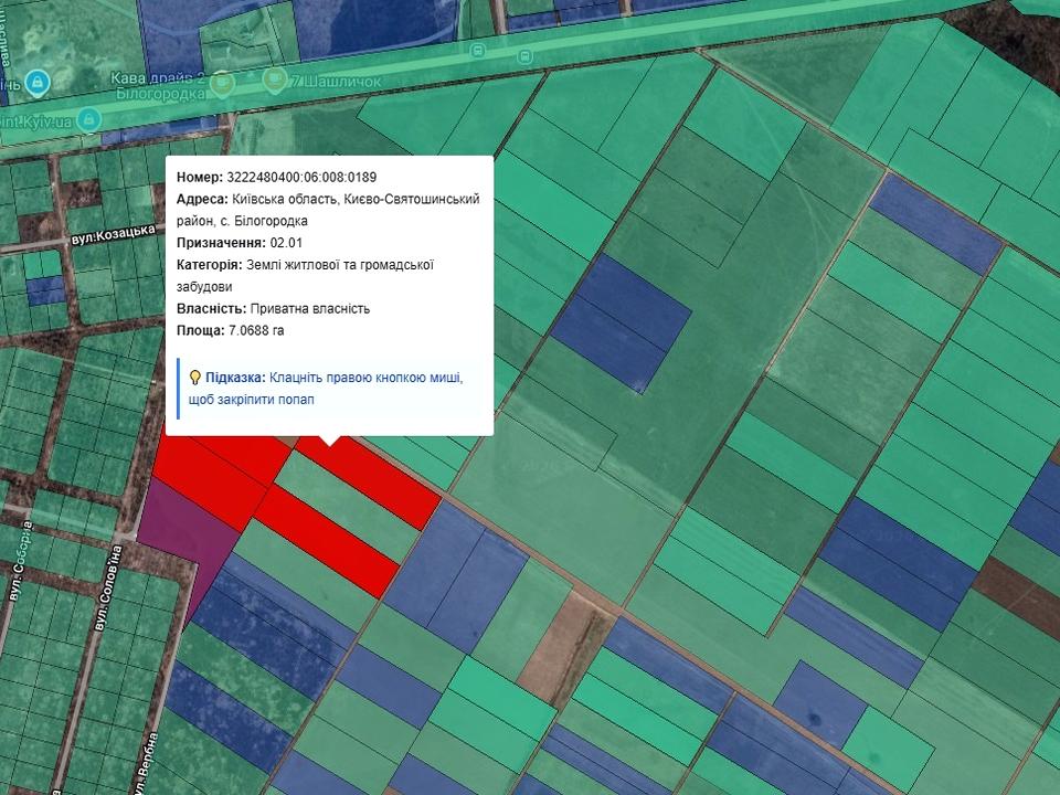 3222480400:06:008:0189 - (7,0939 ГА) 02.01 Для будівництва та обслуговування житлового будинку, господарських будівель та споруд (присадибна ділянка)