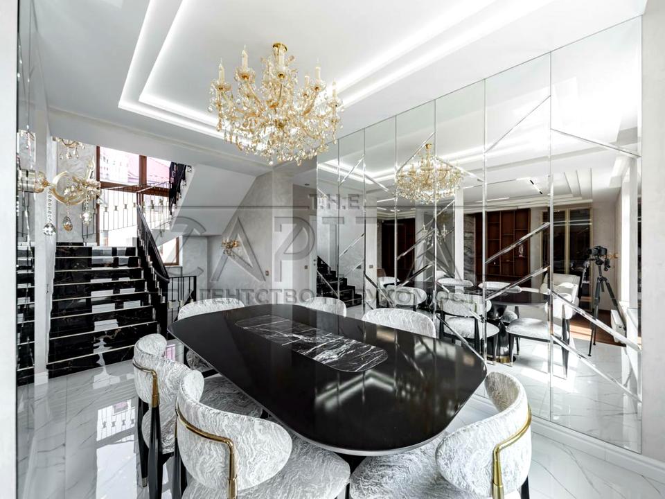Перший поверх - хол, кухня AYAX (кварц натуральний),техніка Miele, їдальня (меблі NE STANDART та GABBA), камінна зала (електричний камін) з меблями BLANCHE, санвузол, тераса.
