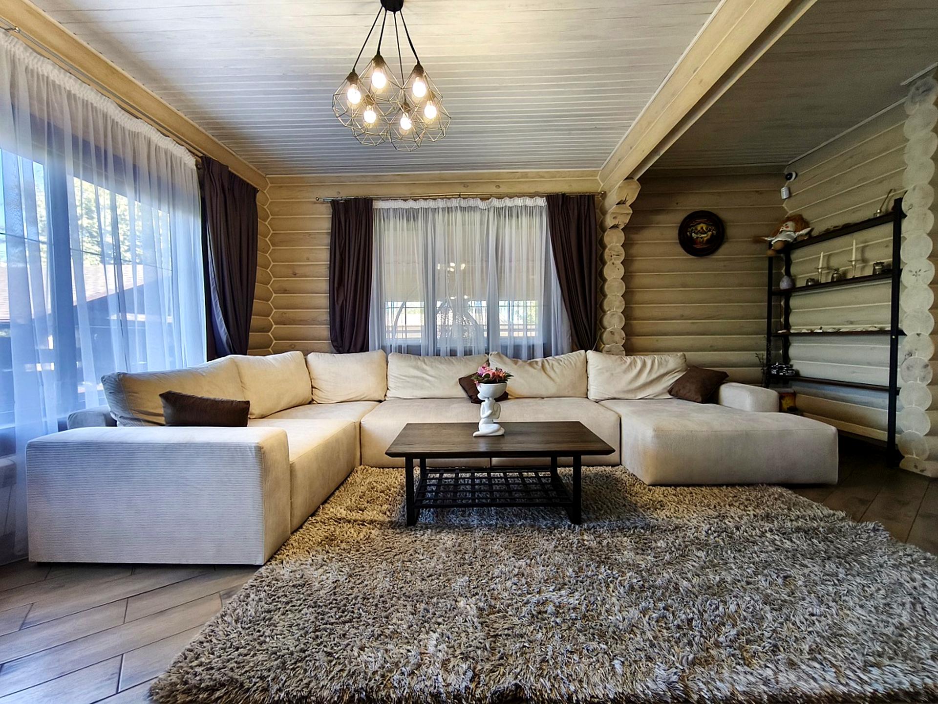 Просторий дерев’яний будинок 200 м.кв. (260 м.кв. з терасою) з якісним ремонтом, дизайнерськими дерев'яним меблями, теплою підлогою, системою сигналізації Ajax і відеонаглядом.