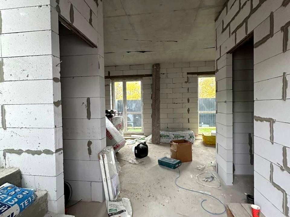 Таунхаус, 2 поверхи, 3 кімнати. Матеріал стін - газоблок. Під'їзд до будинку - асфальт. Площа ділянки 1 сотка. Планування кімнат Роздільне. Тип кухні - кухня-студія. Своя каналізація. Загальний стан будинку - Без ремонту. Холодна вода - свердловина. Кількість санвузлів: 2. Покриття даху - металочерепиця. Кількість паркомісць: 1. Кількість спален: 3. Без комісії