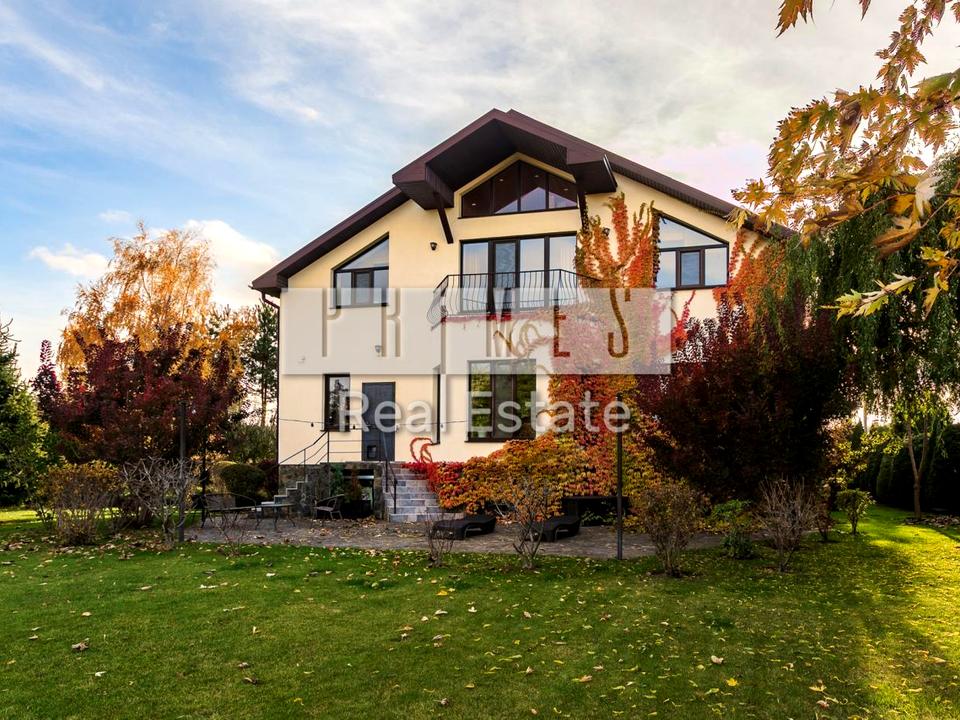 Продається будинок із вражаючим садом та просторою ділянкою 30 соток. Загальна площа будинку 480 м², він має два наземні і два підземні поверхи. Будинок обладнаний якісним ремонтом, меблями та технікою. У вітальні встановлений камін для затишку та додаткового тепла. Є тепла підлога, кондиціонери, фанкойл, система охорони Ajax, відеонагляд по периметру.