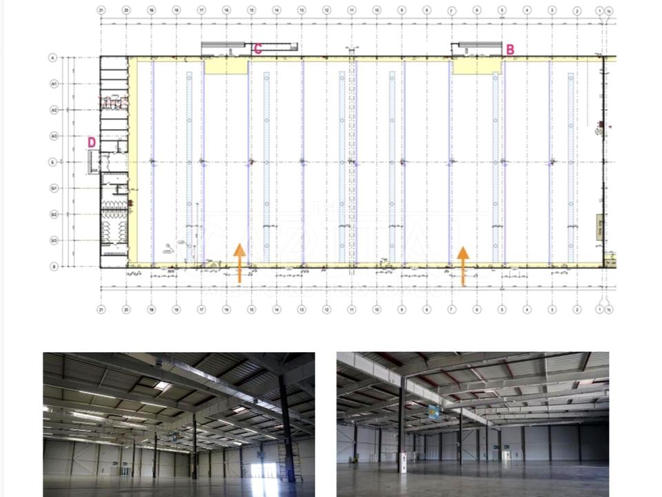 • Вантажні ворота ширина 4,87 м, висота 4,5 м, на рівні землі