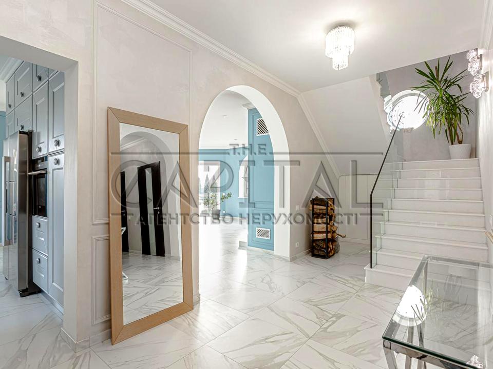 Будинок, 2 поверхи, 4 кімнати. Під'їзд до будинку - асфальт. Площа ділянки 28 соток. Планування кімнат Роздільне. Є холодна вода, є гаряча вода. Є опалення. У будинку 3 спільних санвузла. Є сантехніка. Проведені. Тип кухні - кухня-їдальня. Є огорожа. У будинку є Підігрів підлоги. Своя каналізація. На території ділянки є гараж, прибудова, басейн, сад. Загальний стан будинку - З ремонтом. Поруч є зупинки, супермаркет, розважальні заклади. Інтернет оптоволоконний. Працює без світла - вода, опалення, інтернет. Комісія за послуги 50 %