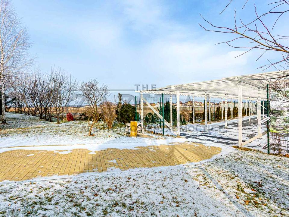 Очень большая придомовая территория 28 соток с бассейном.