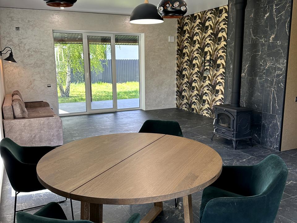 Будинок, 1 кімната, 3 кімнати. Матеріал стін - цегляний, фундамент будинку - залізобетон, матеріал перекриттів - збірний залізобетон. Під'їзд до будинку - асфальт. Площа ділянки 6 соток. Висота стелі 2.8 метра. Вид з вікон у двір. Планування кімнат Роздільне. Газу немає. Холодна вода - свердловина, гаряча вода - електричний бойлер. Опалення котел електричний. У будинку 2 роздільних санвузла, туалет / душ. Сантехніка нова. Проведені. Вхідні двері броньовані, немає сходів. Покриття підлоги - плитка, є підігрів підлоги. В будинку немає балконів. Тип кухні - кухня-студія. Вікна металопластикові, нові. Покриття даху - металочерепиця. Є огорожа. Немає підвалу. У будинку є Холодильник, Ліжко, Кондиціонер, Лічильники, Душова кабіна, Посудомийна машина. Будинок побудований в 2023 році. Своя каналізація. У будинка 1 власник. Загальний стан будинку - Дизайнерський ремонт. Можливість прописки, автопарковка. Поруч є супермаркет, ліс, річка / озеро, зупинки. Будинок приватизований. Прямий продаж, Вільна. Сантехніка нова. Інтернет оптоволоконний. Зовнішнє утеплення стін. Власник погоджується продати по програмі єОселя. Працює без світла - вода, інтернет. Без комісії