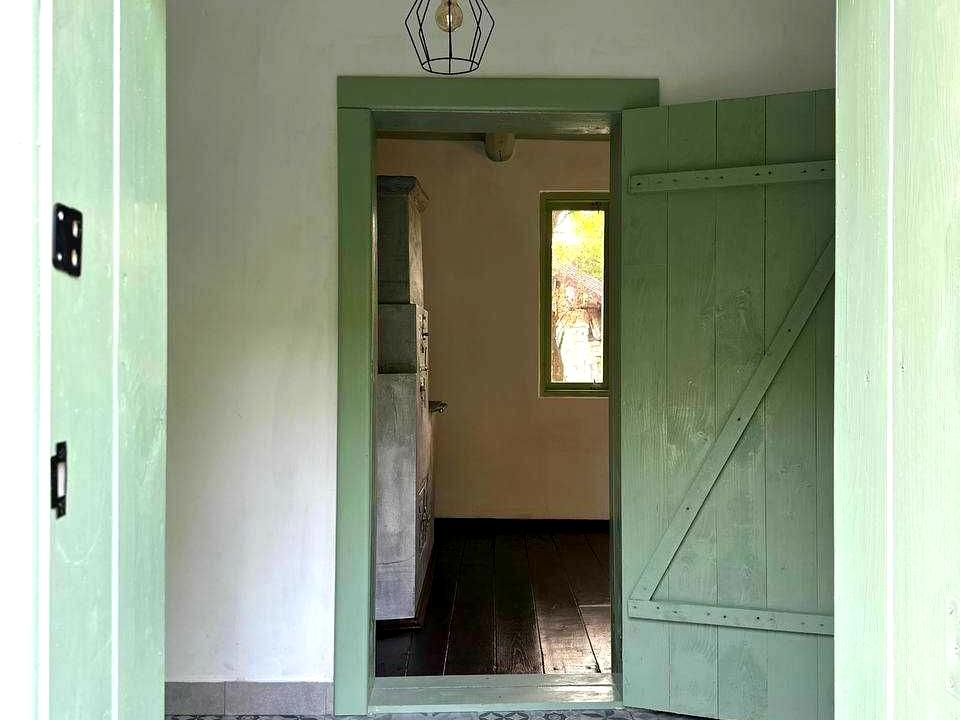 В кухні та кімнаті - рідні печі, які чудово гріють, та дощата стеля на бальках, на одній з яких - напис, який мусите прочитати самі!