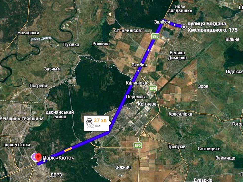 Місто Бровари — за 17 км, метро Лісова - 35 км