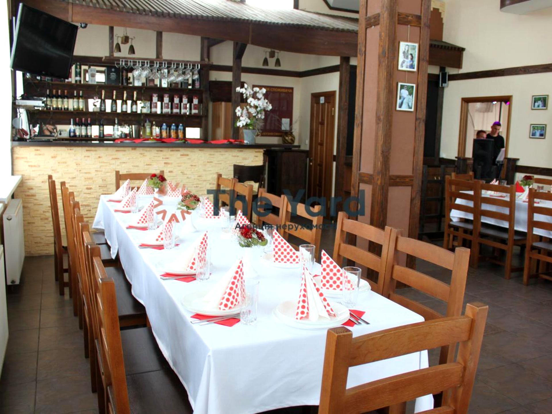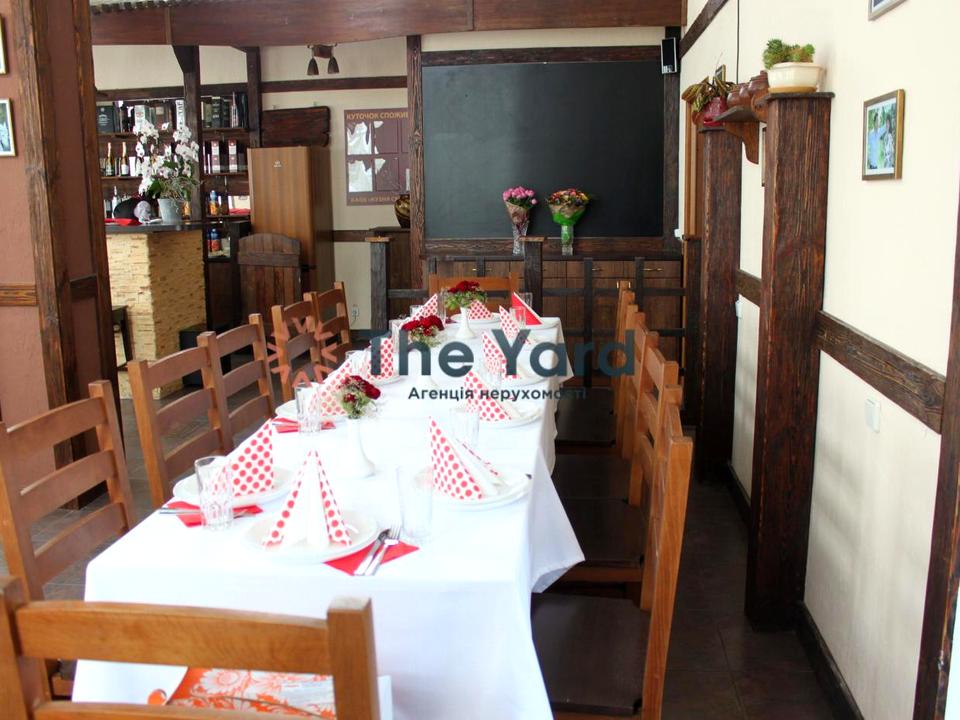 Приміщення ресторану складається з двох залів, з яких великий зал з баром на 35-40 посадочних місць, маленький зал на 15-20 посадочних місць та мають окремий вхід з вулиці та внутрішні двері між собою, також велику кухню з додатковим входом із заднього двору. За будівлею знаходиться вагончик-склад, що є зручним місцем для зберігання інвентарю, пілетів, продукції. Територія ділянки дозволяє розмістити літні альтанки, дитячий майданчик, тощо. Під'їзні шляхи та парковка перед будівлею асфальтована. Поряд з будівлею знаходиться будинок охорони містечка, що дає додаткову безпеку та нагляд за прилеглою територією.
