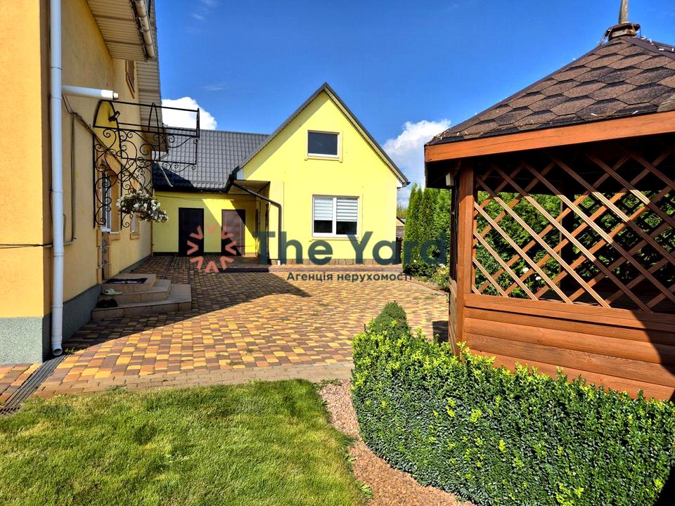 Ділянка обгороджена якісним парканом, встановлено відкотні автоматичні ворота. Територія навколо будинку викладена якісною бруківкою, в дворі великий простір для паркування авто.