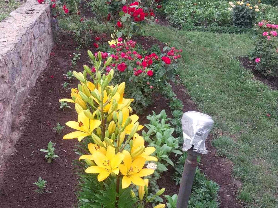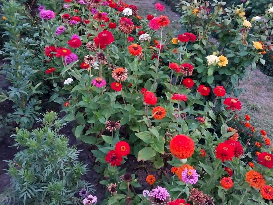 Молодий доглянутий сад, багаторічники, ягоди . Дуже багато квітів.