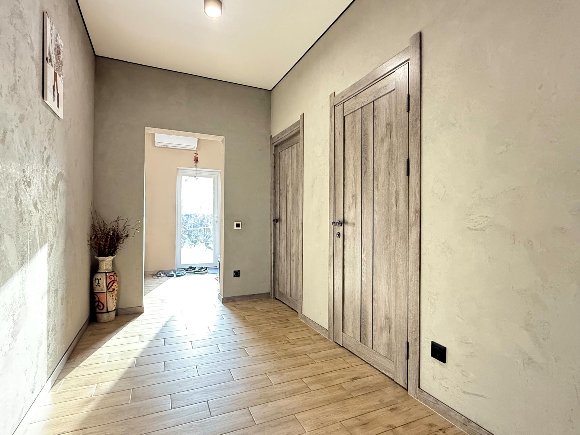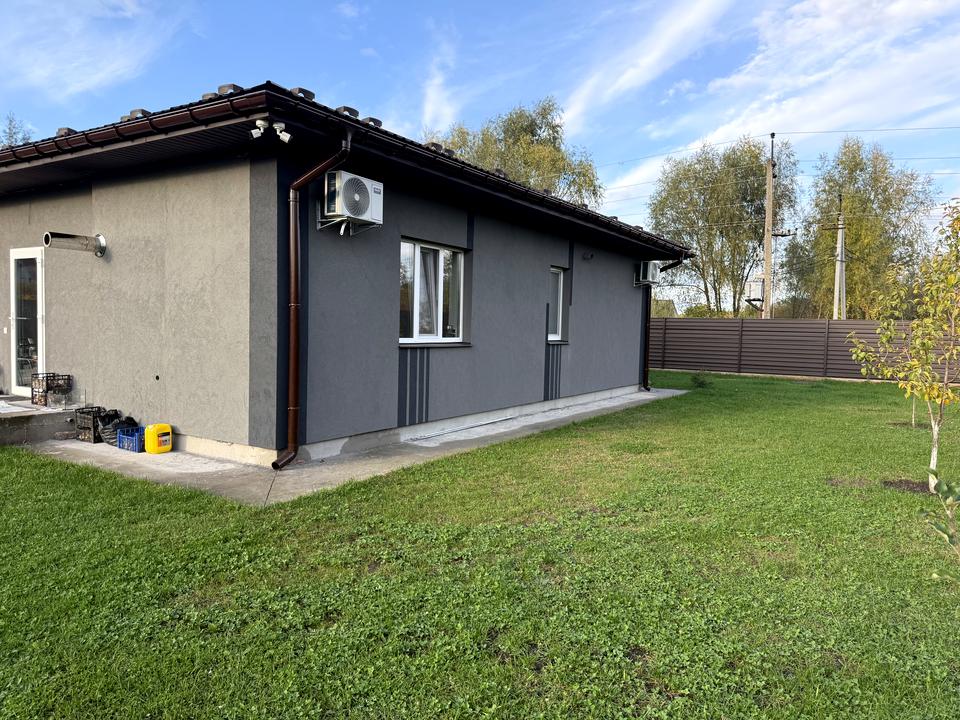 Будинок, 1 поверх, 3 кімнати. Матеріал стін - газоблок, фундамент будинку - залізобетон. Площа ділянки 10 соток. Планування кімнат Роздільне. Немає підвалу. У будинку є Підігрів підлоги, Сад/город, Тераса. Будинок побудований в 2025 році. Своя каналізація. Загальний стан будинку - З ремонтом. Холодна вода - свердловина. Гаряча вода - електричний бойлер. Опалення котел електричний. Покриття даху - металочерепиця. Інтернет оптоволоконний. Без комісії
