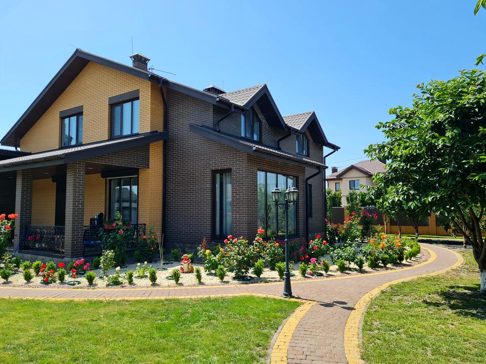 Будинок, 2 поверхи, 5 кімнат. Площа ділянки 20 соток. Планування кімнат Роздільне. У будинку є Телевізор, Супутникове ТБ, Підігрів підлоги, Камін, Кондиціонер, Пральна машина, Душова кабіна, Ванна, Холодильник, Мікрохвильовка, Посудомийна машина, Сигналізація, Сейф, Автополив, Газон, Зона мангалу, Гараж, Тераса, Бесідка, Басейн. Своя каналізація. Загальний стан будинку - З ремонтом. Газ природний. Холодна вода - свердловина. Гаряча вода - газовий котел. Опалення котел комбінований. Тип автономної електроенергії: генератор, акумулятори / джерела безперебійного живлення. Інтернет оптоволоконний
