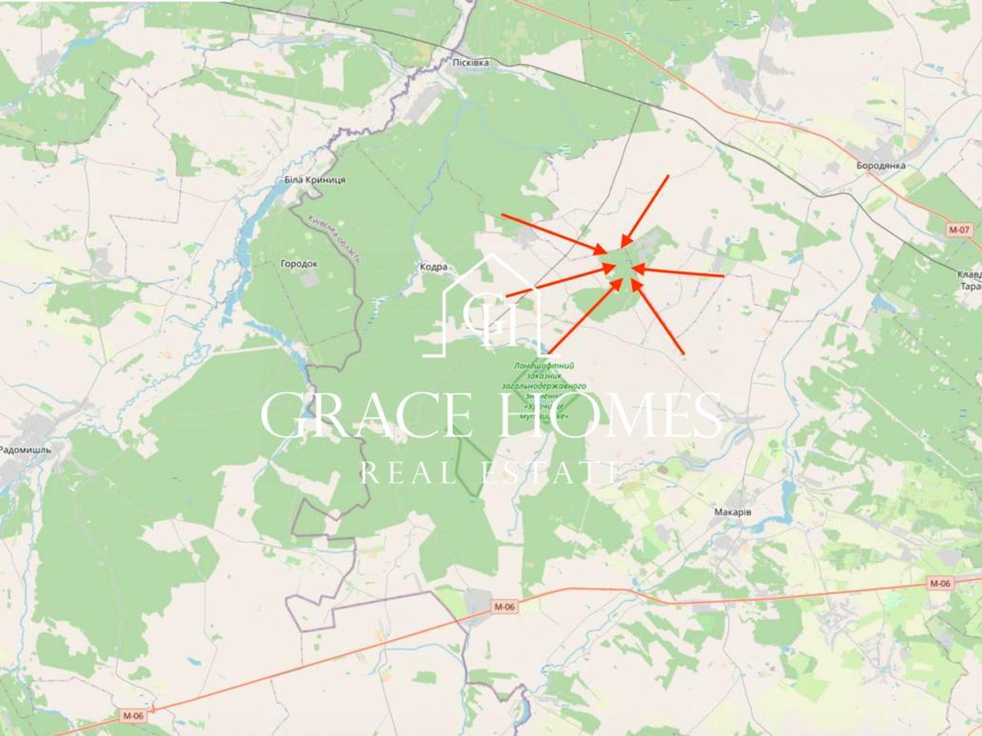 Київська область, Макарівський район, Королівська сільська рада. (по середині між: Бородянка, Макарів, Біла Криниця/Кодра/Городок/Пісківка, Радомишль).