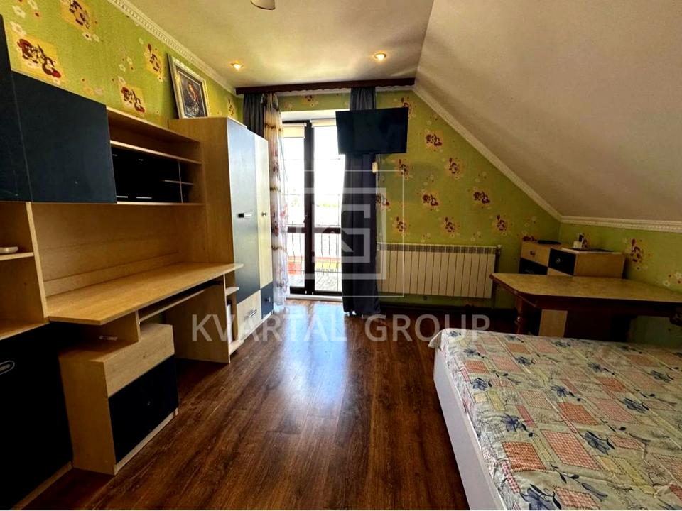 Затишний двоповерховий будинок площею 150 м² (житлова — 72 м², кухня — 18 м²) з додатковим гостьовим будинком 80 м², де є 2 кімнати та гараж.