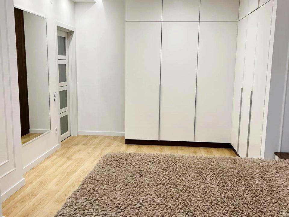 У спальні встановлене велике дво-спальне ліжко з ортопедичним матрасом, вмонтовані шафи-ку, в кухні встановлений кутовий диван, телевізори, у ванній кімнаті нова пральна машина.