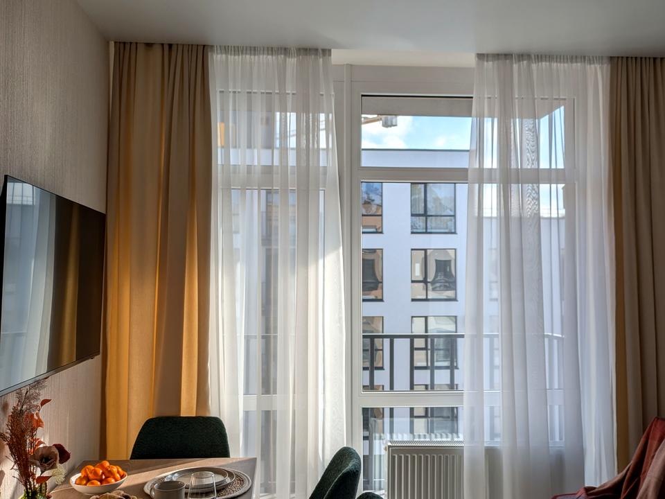 В квартирі 1 кімната, Технологія будівництва - Монолітно-каркасна. Планування кімнат Суміжне. У квартирі є Телевізор, Підігрів підлоги, Кондиціонер, Пральна машина, Ванна, Холодильник, Посудомийна машина. Будинок побудований в 2025 році. Загальний стан квартири - З ремонтом. Безбар'єрність: вхід у будинок на рівні землі, дверні отвори в будинку шириною понад 0.9 м. Працює без світла - вода, опалення, інтернет. Комісія за послуги 100 грн