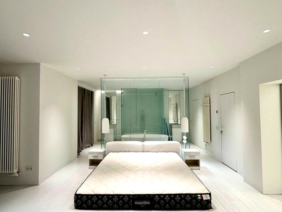 ▫️Перша спальня площею 45 кв.м. в білих тонах з великим двоспальним ліжком,відкритою ванною, душем, гардеробною кімнатою та кімнатою з туалетом та біде🛏️🛁
