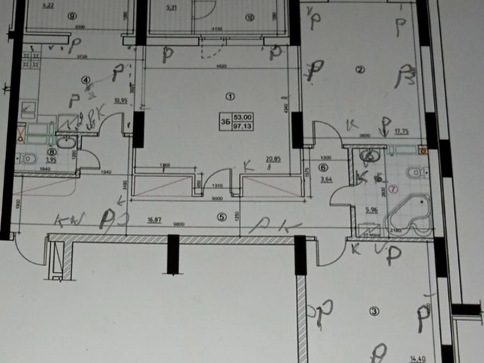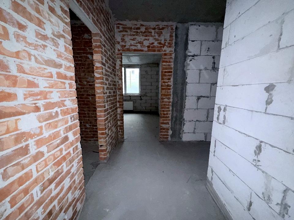 Квартира без оздоблення, що дозволяє зробити перепланування — простора кухня-вітальня близько 50 м² і дві окремі спальні.