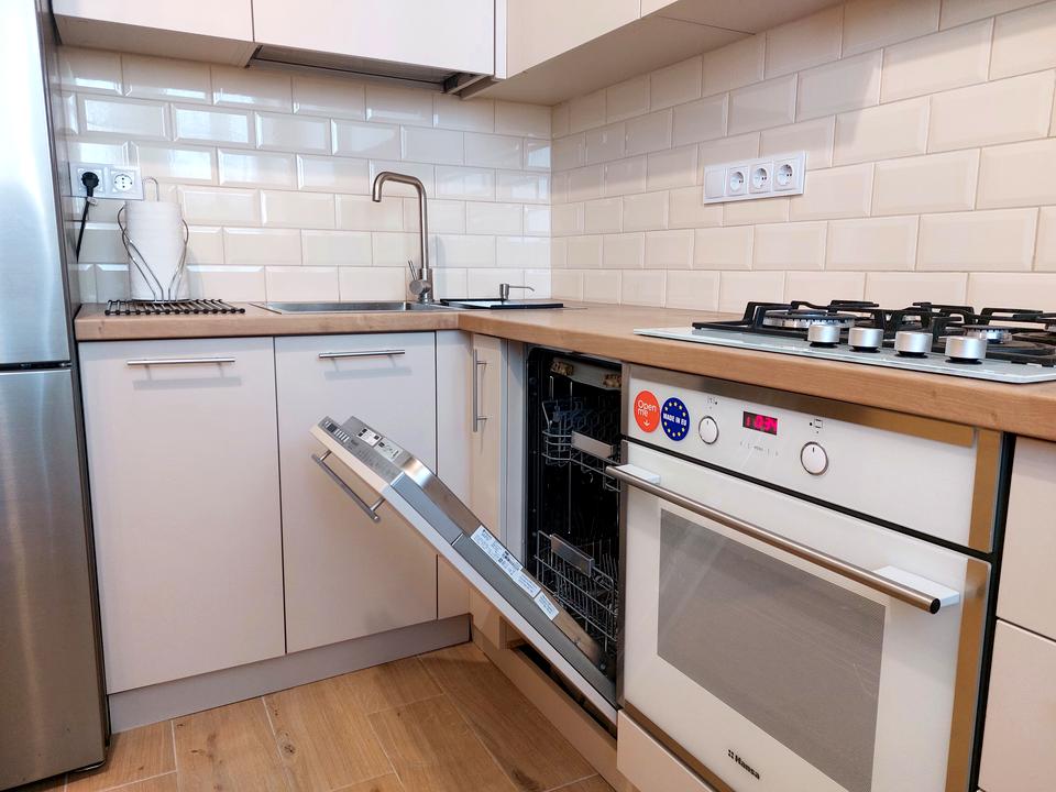 Квартира з гарним ремонтом, в якій майже не проживали. Є усі необхідні меблі та техніка: диван, двоспальне ліжко, шафа купе, духова шафа, холодильник, посудомийна машина, телевізор, пральна машина.