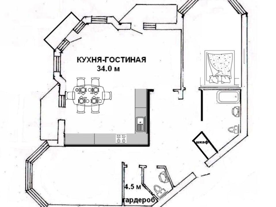• Простора та світла 120кв.м., дві окремі кімнати та кухня-вітальня 40кв.м.
