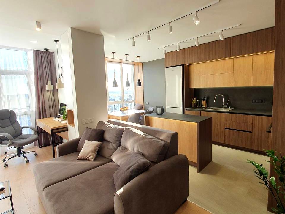 В квартирі 2 кімнати, висота стелі 2.7 метра, Тип будинку - Спец. проект. Кухонна плита електрична. Є балкон. У квартирі є Телевізор, Підігрів підлоги, Кондиціонер, Пральна машина, Ванна, Холодильник, Посудомийна машина. Будинок побудований в 2025 році. Загальний стан квартири - З ремонтом. Гаряча вода - електричний бойлер. Кількість санвузлів: 1. Інтернет оптоволоконний. Працює без світла - вода, опалення, інтернет, ліфт, резервне живлення квартири (акумулятори). Тип кухні - кухня-студія. Кількість спален: 1. Є підземний паркінг, доступний як укриття. Інфраструктура території: дитячий майданчик, спортивний майданчик, виокремлена зона для вигулу тварин. Комісія за послуги 50 %