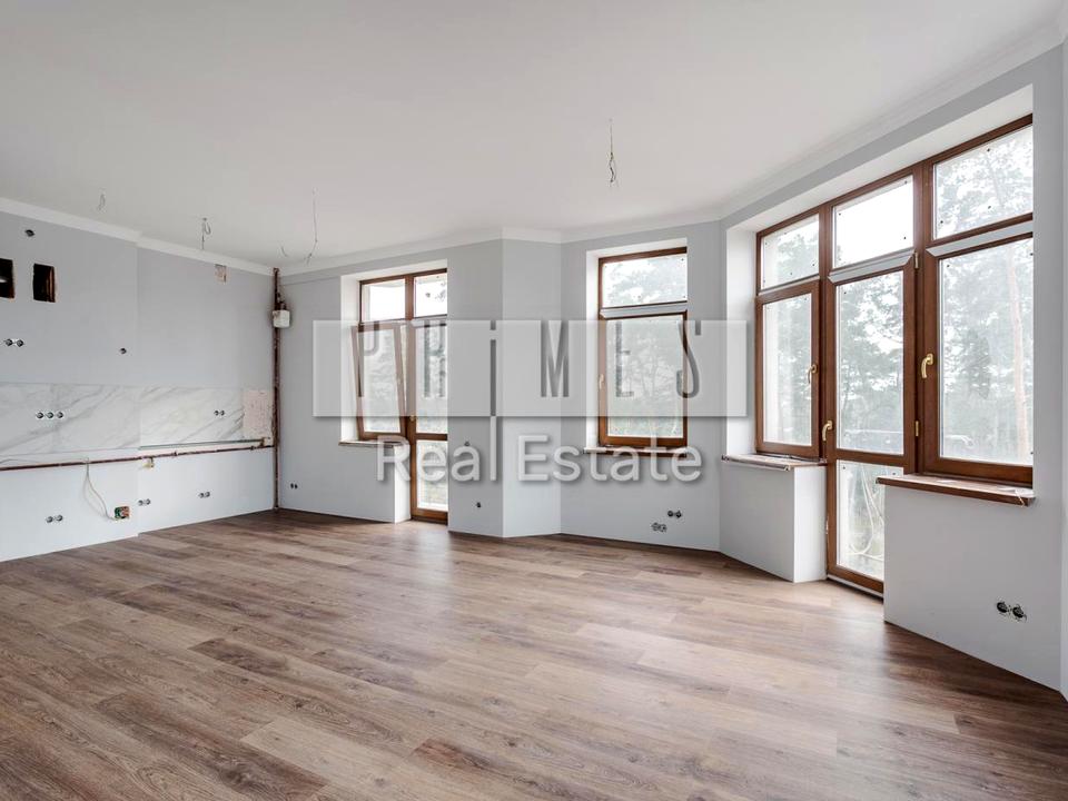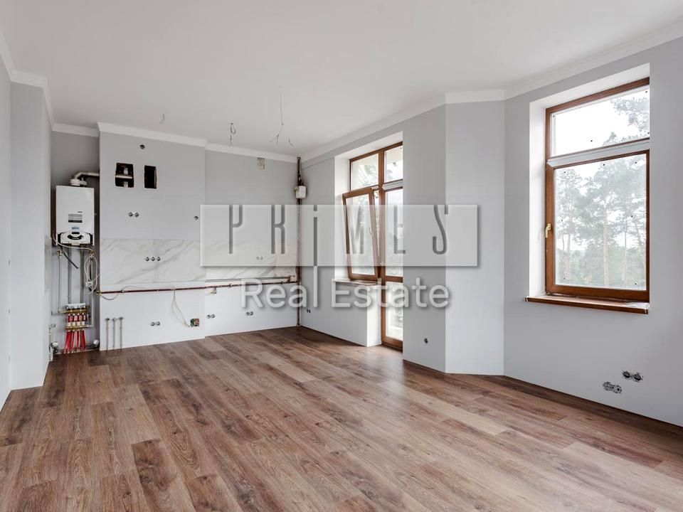 Повноцінна видова квартира для життя з дуже якісним ремонтом без меблів, панорамні вікна, французький балкон - вражаючий вид на сосни створює відчуття спокою. Індивідуальне газове опалення. Тепла водяна підлога в кухні, коридорі та санвузлі