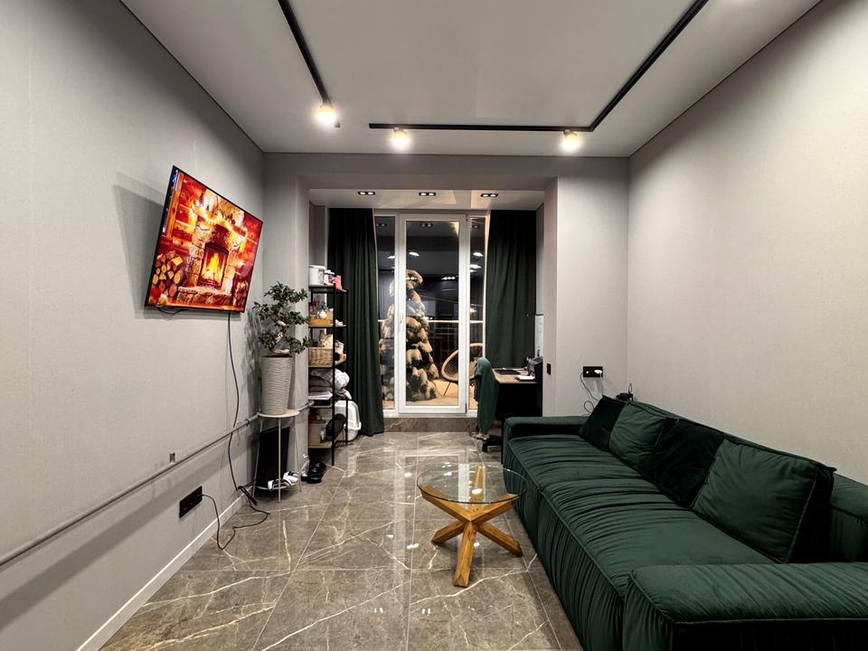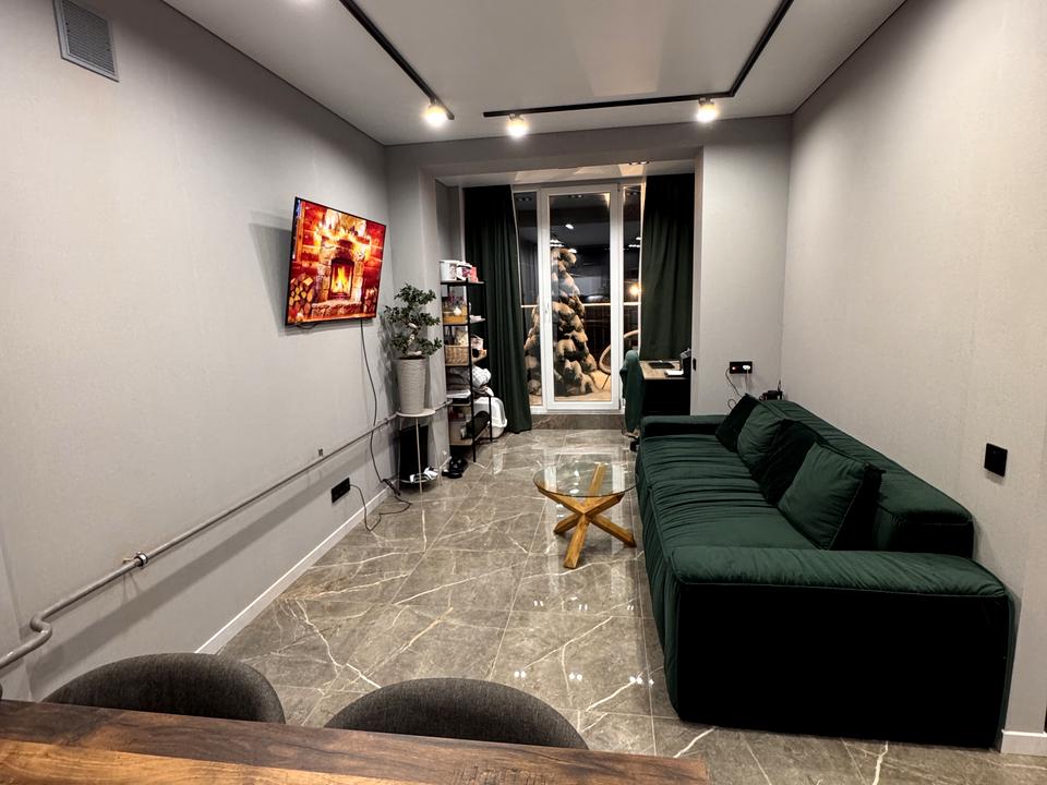 Велика кухня-студія з розкладним диваном.