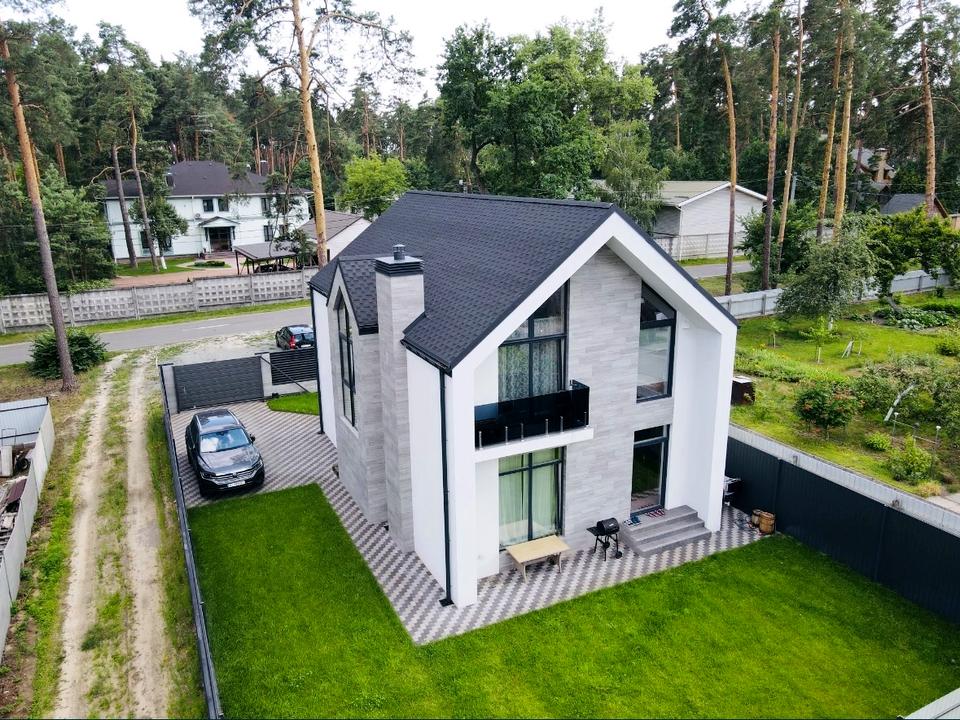 Будинок, 2 поверхи, 5 кімнат. Матеріал стін - цегляний, фундамент будинку - залізобетон, матеріал перекриттів - збірний залізобетон. Під'їзд до будинку - асфальт. Площа ділянки 4 сотки. Висота стелі 3 метра. Планування кімнат Роздільне. Покриття підлоги - плитка. В будинку 2 балкони. Тип кухні - кухня-студія. Покриття даху - металочерепиця. Немає підвалу. У будинку є Телевізор, Кабельне ТБ, Підігрів підлоги, Пральна машина, Душова кабіна, Джакузі, Холодильник, Мікрохвильовка, Посудомийна машина, Сигналізація, Автополив, Газон. Будинок побудований в 2021 році. Своя каналізація. Загальний стан будинку - З ремонтом. Холодна вода - свердловина. Гаряча вода - електричний бойлер. Опалення котел електричний. Кількість санвузлів: 2. Тип автономної електроенергії: генератор. Інтернет оптоволоконний. Власник погоджується продати по програмі єОселя. Працює без світла - інтернет. Без комісії