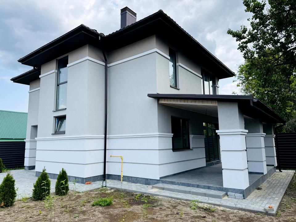 Будинок, 2 поверхи, 4 кімнати. Матеріал стін - газоблок, фундамент будинку - залізобетон, матеріал перекриттів - збірний залізобетон. Під'їзд до будинку - асфальт. Площа ділянки 4 сотки. Висота стелі 3 метра. Вид з вікон у двір. Планування кімнат Роздільне. Газ природний. Холодна вода - водопровід, гаряча вода - газовий котел. Опалення котел газовий. У будинку 2 роздільних санвузла, туалет/ванна/душ. Сантехніка нова. Проведені. Вхідні двері броньовані, сходи бетонні. Покриття підлоги - стяжка, підігріву підлоги немає. В будинку немає балконів. Тип кухні - кухня-студія. Вікна металопластикові, нові. Покриття даху - металочерепиця. Є огорожа. Немає підвалу. Будинок побудований в 2024 році. Централізована каналізація. У будинка 1 власник. Загальний стан будинку - Від будівельників (з обробкою). Поруч є школа, дитсадок, зупинки, розважальні заклади, супермаркет, парк, річка / озеро, ліс. Будинок приватизований. Торг доречний, Вільна, Можливе розтермінування. Сантехніка нова. Інтернет оптоволоконний. Зовнішнє утеплення стін. Власник погоджується продати по програмі єОселя. Працює без світла - вода, газ, інтернет. Без комісії