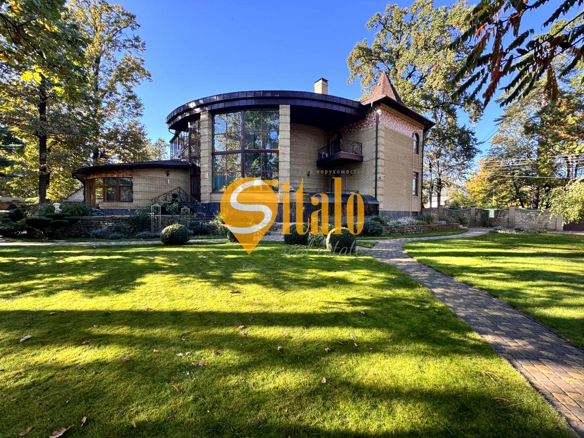 Ділянка 21 сотка: доглянута, з ландшафтним дизайном, огороджена парканом з цегли та натурального каменю. Є літня альтанка, зона барбекю, приміщення для охорони й садового інвентарю. По периметру відеоспостереження і система охорони Ajax.