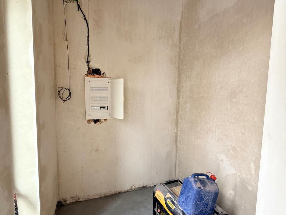 Усередині вже виконана велика частина ремонтних робіт: розведено опалення, електрику й сантехніку, встановлено радіатори, теплу підлогу по всьому першому поверху, зроблено гіпсову штукатурку стін і стяжку підлоги.