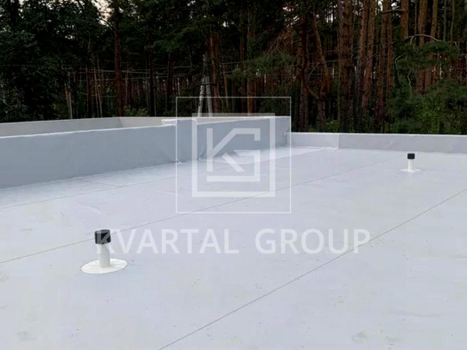 Залита чорнова підлога , стіни газоблок ,перекриття -бетонна цільна плита . Покриття даху - Пвх мембрана . В середині будинку зроблена машинна штукатурка та камінопічь .