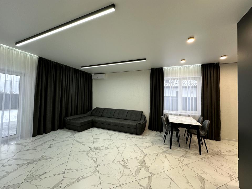 Будинок, 1 поверх, 3 кімнати. Площа ділянки 7 соток. Планування кімнат Роздільне. У будинку є Кабельне ТБ, Підігрів підлоги, Кондиціонер, Ванна, Холодильник, Посудомийна машина, Сигналізація, Тераса. Загальний стан будинку - З ремонтом. Без комісії