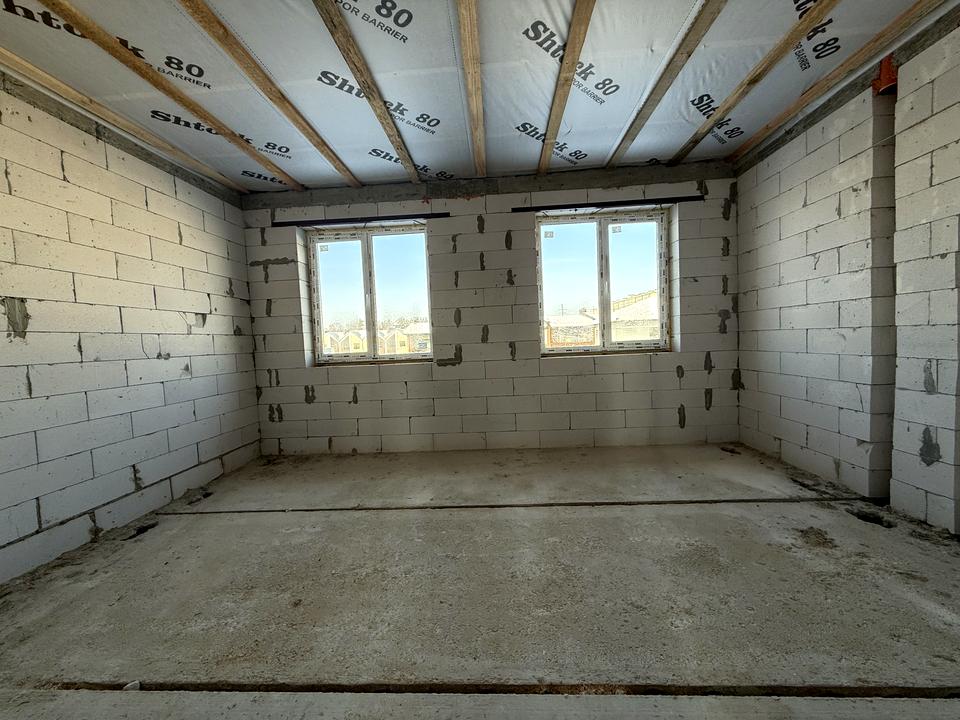 Таунхаус, 2 поверхи, 3 кімнати. Матеріал стін - газоблок, фундамент будинку - блоки, матеріал перекриттів - збірний залізобетон. Під'їзд до будинку - асфальт. Площа ділянки 1 сотка. Висота стелі 2.8 метра. Планування кімнат Роздільне. Газ природний. Холодна вода - водопровід, гаряча вода - газовий котел. Опалення котел газовий. В будинку немає балконів. Тип кухні - кухня-студія. Покриття даху - металочерепиця. Немає підвалу. У будинку є Сад/город, Тераса. Будинок побудований в 2025 році. Централізована каналізація. Загальний стан будинку - Без ремонту. Кількість санвузлів: 2. Інтернет оптоволоконний. Зовнішнє утеплення стін. Працює без світла - вода, газ, опалення, інтернет. Власник погоджується продати по програмі єВідновлення. Без комісії