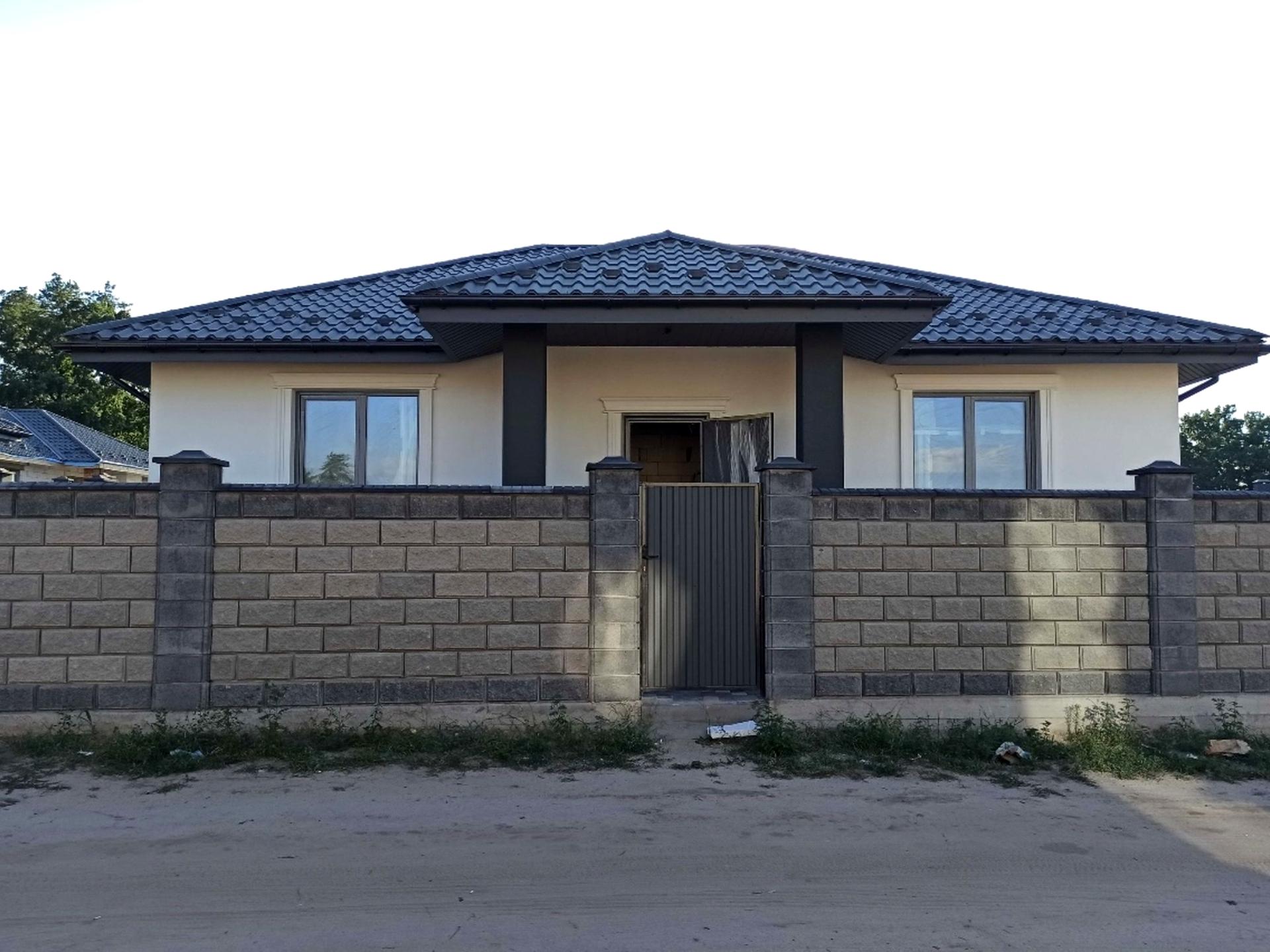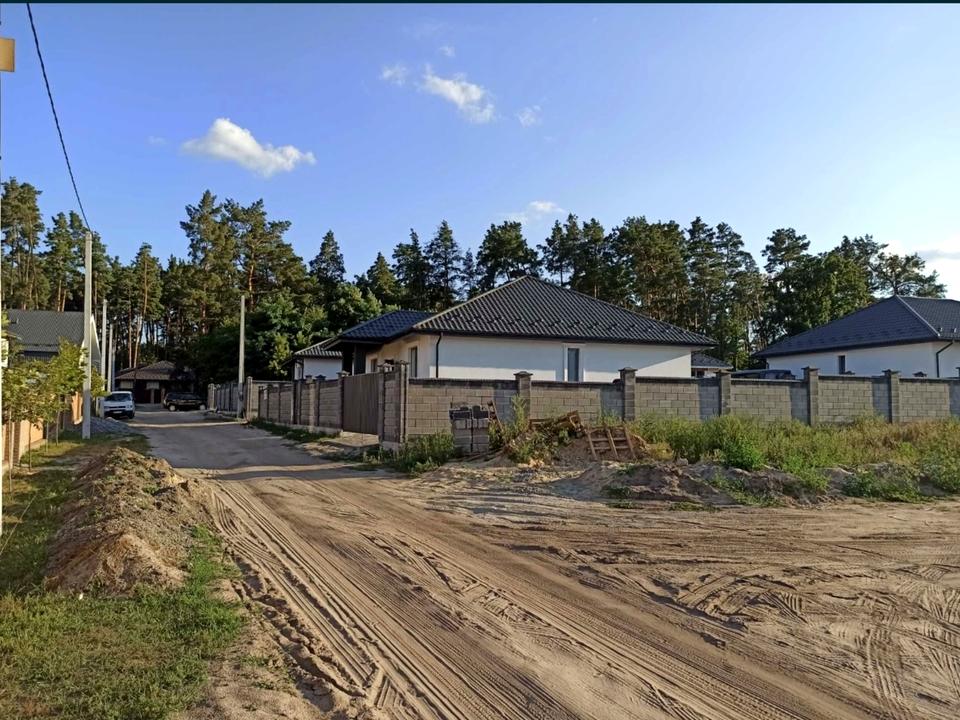 Будинок, 1 поверх, 3 кімнати. Матеріал стін - газоблок, фундамент будинку - залізобетон. Під'їзд до будинку - асфальт. Площа ділянки 5 соток. Тип кухні - кухня-студія. Своя каналізація. Загальний стан будинку - Без ремонту. Газу немає. Холодна вода - свердловина. Опалення котел електричний. Кількість санвузлів: 1. Покриття даху - металочерепиця. Власник погоджується продати по програмі єВідновлення. Кількість паркомісць: 2. Кількість спален: 3. Без комісії