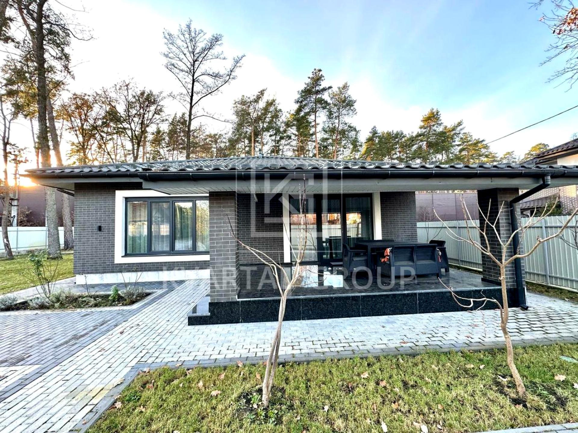 Будинок, 1 поверх, 3 кімнати. Матеріал стін - цегляний. Під'їзд до будинку - асфальт. Площа ділянки 6 соток. Покриття підлоги - паркет. Тип кухні - кухня-студія. Немає підвалу. У будинку є Телевізор, Підігрів підлоги, Пральна машина, Душова кабіна, Холодильник, Мікрохвильовка, Автополив, Тераса. Будинок побудований в 2020 році. Централізована каналізація. Загальний стан будинку - З ремонтом. Газ природний. Холодна вода - водопровід. Гаряча вода - газовий котел. Опалення котел газовий. Кількість санвузлів: 2. Тип автономної електроенергії: генератор. Власник погоджується продати по програмі єОселя. Працює без світла - вода, газ, опалення, інтернет, резервне живлення (акумулятори/генератор). Кількість спален: 3. Без комісії