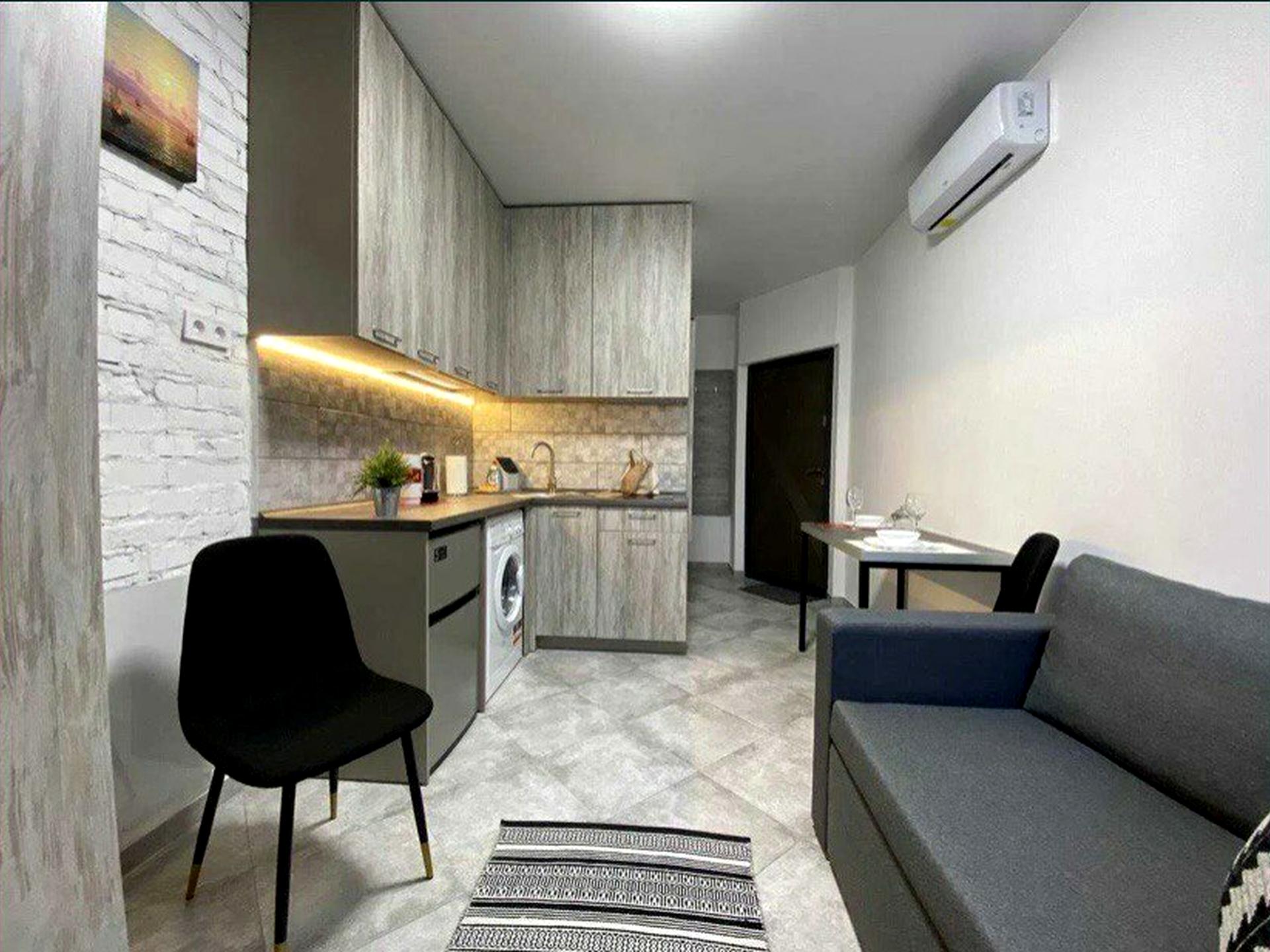 В квартирі 1 кімната, Технологія будівництва - Цегляна. Квартира стандартна, планування кімнат Студія. Немає газу, кухонна плита електрична. Гаряча вода - електричний бойлер. Опалення центральне. Суміщений санвузол, Туалет/душ. Є сантехніка. В квартирі є Телевізор, Шафа, Ліжко, Кондиціонер, Пральна машина, Душова кабіна, Холодильник, Мікрохвильовка. Загальний стан квартири - З ремонтом. Консьєрж. Поруч є розважальні заклади, зупинки, супермаркет, парк, річка/озеро. Терміново. Комісія за послуги 50 %