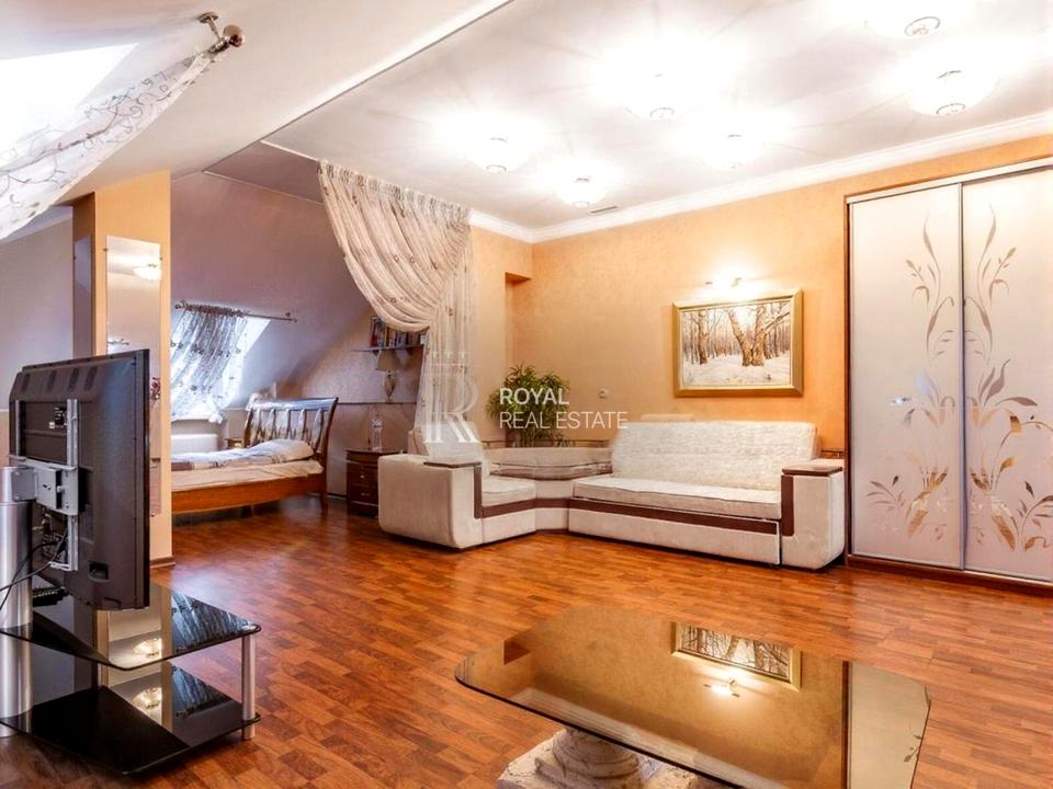 Будинок, 2 поверхи, 6 кімнат. Площа ділянки 22 сотки. Планування кімнат Роздільне. У будинку є Телевізор, Кондиціонер, Пральна машина, Душова кабіна, Ванна, Холодильник, Мікрохвильовка, Сигналізація, Газон, Гараж, Тераса, Бесідка, Лазня, Басейн. Загальний стан будинку - З ремонтом. Працює без світла - газ, інтернет, резервне живлення (акумулятори/генератор). Комісія за послуги 3 %
