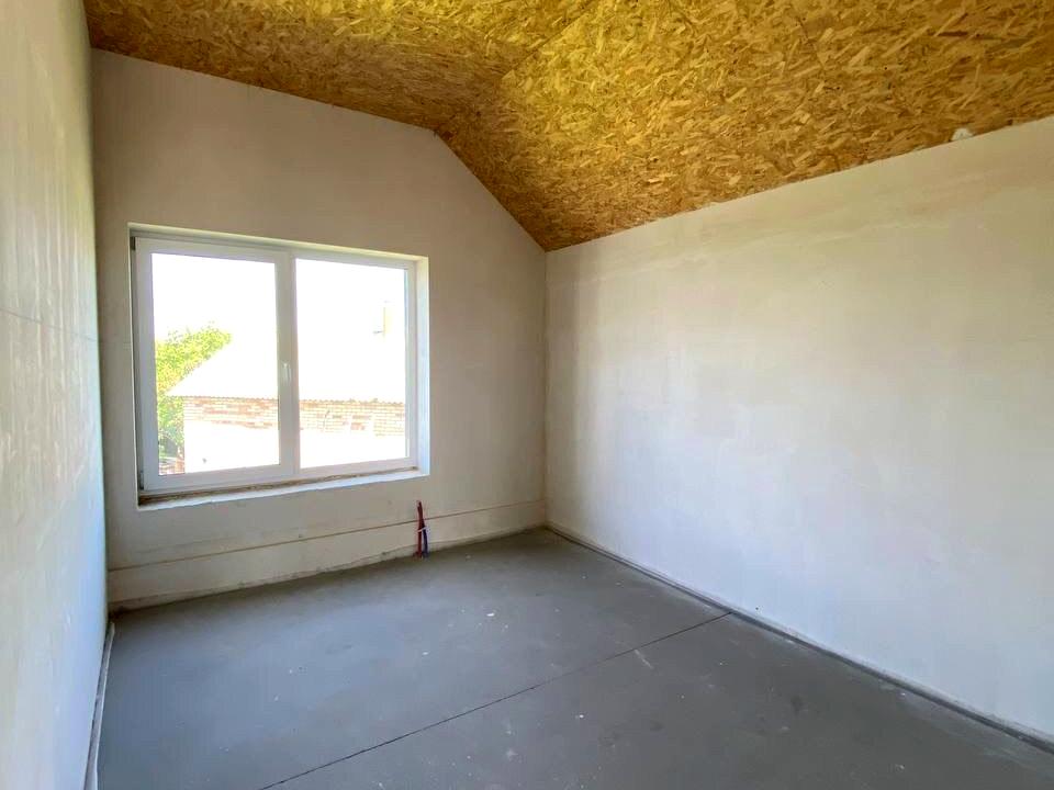 Пропонується до продажу таунхаус площею 115 м² у котеджному містечку біля Чабанів, 10 хв. від метро Теремки. Будівництво здійснене з газоблоку та утеплення. Земельна ділянка – 2 сотки. В будинку вже зроблені стяжка, тепла підлога, штукатурка та встановлені металеві сходи. На першому поверсі: кухня, вітальня, санвузол, гардеробна, котельня. На другому: 3 кімнати, санвузол, гардеробна, балкон. Комунікації: централізована каналізація, свердловина, 10 кВт електроенергії, газ, інтернет. Містечко має закриту територію, власну та гостьову парковку, відеоспостереження, охорону, озеро, розвинену інфраструктуру. Виїзд на Одеську трасу.