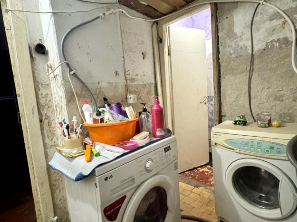пральна машина, шафа та диван.