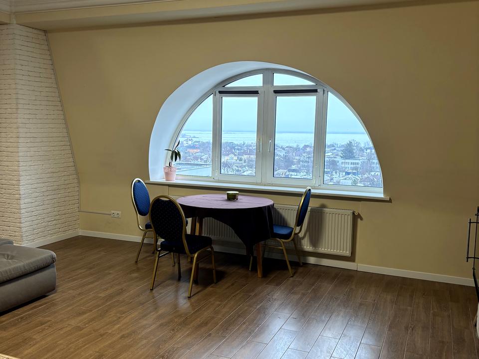 Із вікон відкривається чудовий панорамний вид на річку Дніпро, що створює особливу атмосферу затишку та простору.