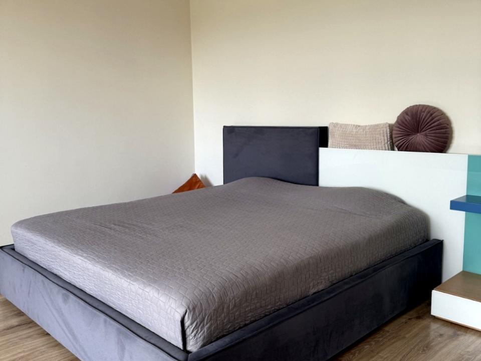 Євродвушка: простора спальня та велика кухня-студія з додатковим спальним місцем.