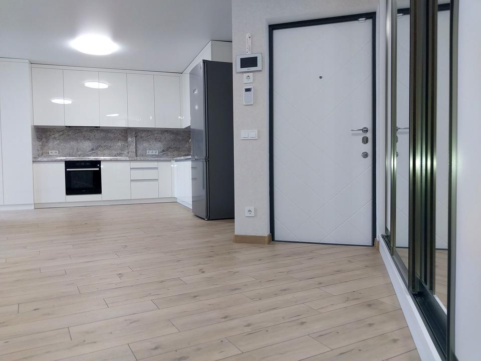 В квартирі 2 кімнати, висота стелі 2.7 метра, Тип будинку - Спец. проект. Є газ, кухонна плита електрична. Є балкон. У квартирі є Підігрів підлоги, Кондиціонер, Пральна машина, Душова кабіна, Холодильник, Мікрохвильовка, Сигналізація. Будинок побудований в 2021 році. Загальний стан квартири - З ремонтом. Гаряча вода - газовий котел. Кількість санвузлів: 2. Тип кухні - кухня-студія. Кількість спален: 2. Комісія за послуги 60 %